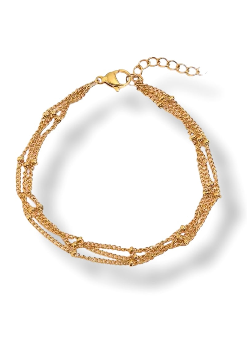 Elevate your style with our Najada triple strand gold plated bead bracelet, a sophisticated piece that combines timeless elegance with bijou charm. The triple strand design creates a striking allure while tiny, silky gold beads catch the light beautifully. Our bracelet transitions effortlessly from day to evening, making it an essential addition to your curated jewellery collection. The triple strand effect offers a luxurious aesthetic with modern, high end glamour.