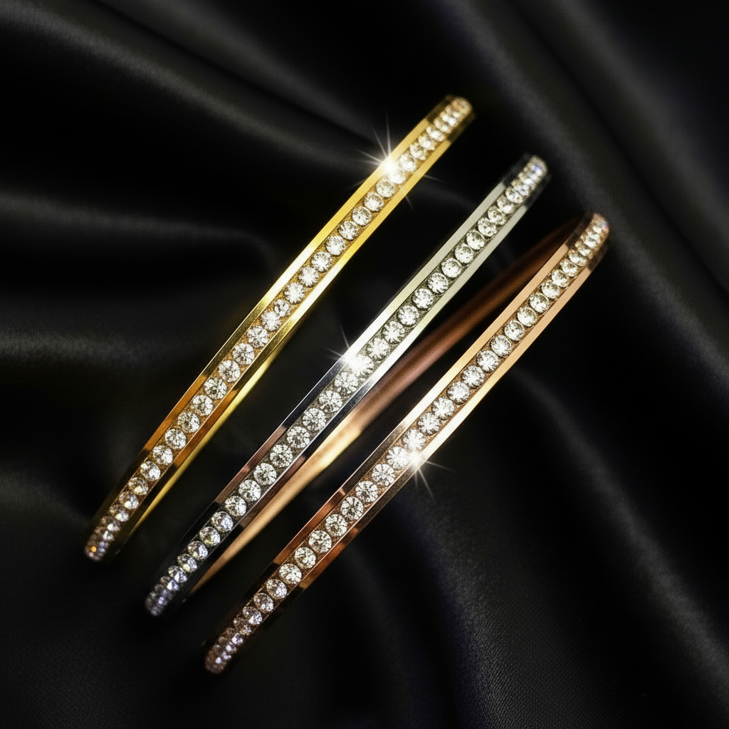 Each bangle is set with sparkling crystals which go all the way around the bangle in a perfect and unending circle.